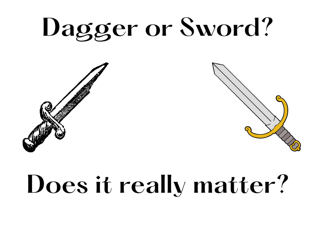 My English teacher crossed out sword and wrote dagger.