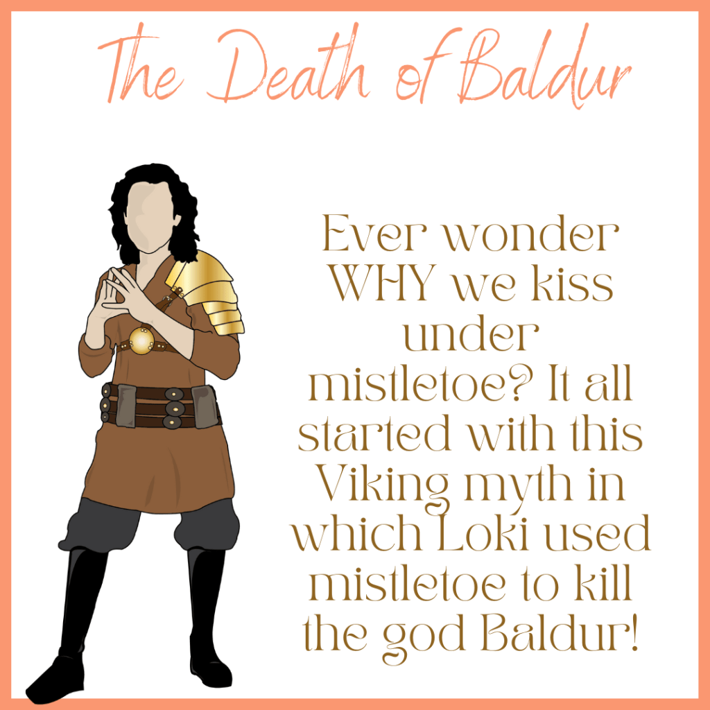 These specific versions may not go into the actual tradition, but this story leads to it. You can find out more about the tradition of honoring Balder’s death by kissing under mistletoe here.