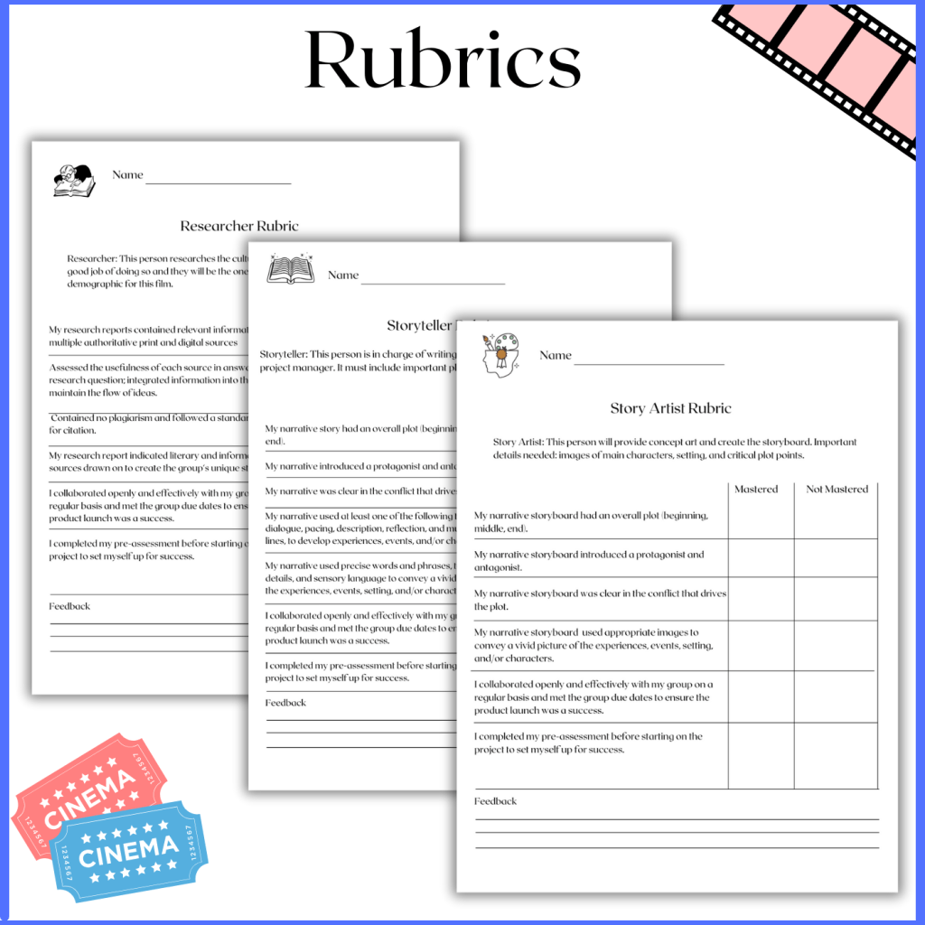 One of the ways that I make sure these objectives are clear are by having 2-point rubrics to guide students as they are working (check out an example of what these look like in my Disney Movie pitch below).