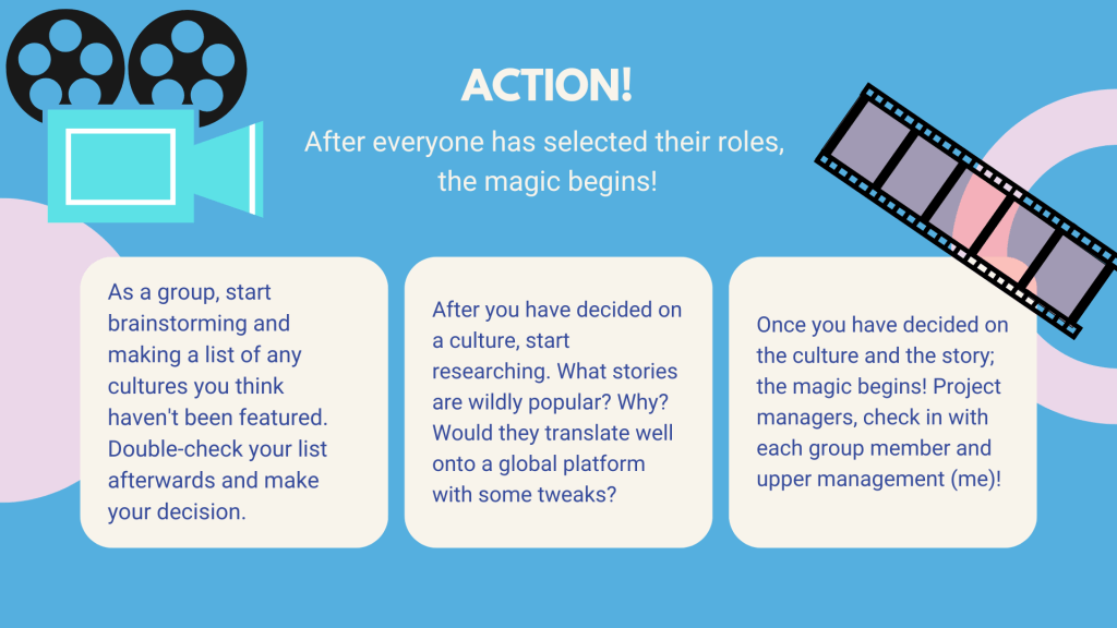When they are creating original movie ideas that they would pitch to Disney, students are charged with researching a culture and creating a vibrant movie idea that would not only entertain audiences but also highlight the culture inspired from it. During this project, I obviously can’t bring Disney executives in. However, I bring in local businesses owners and marketing professionals to check out their pitches and provide feedback.