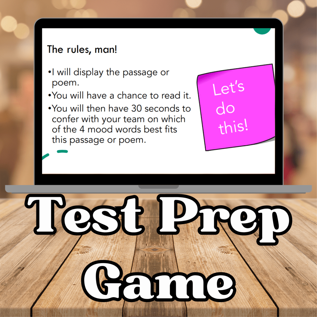 Speaking of games, here is another test prep thing that I LOVE doing where I turn guessing the Mood of a passage into a team competition!