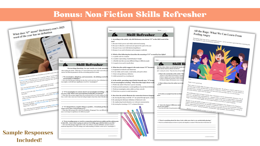 You can teach the unit straight through, pull a poem for a single class period, use the nonfiction articles as skill refreshers, or save the one-pager for a completely different unit later on.