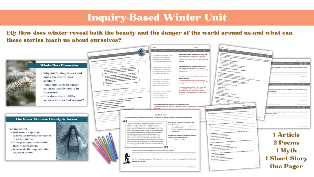 Using winter texts allows students to ease back into analysis through imagery, mood, and theme, rather than jumping straight into dense literary theory.