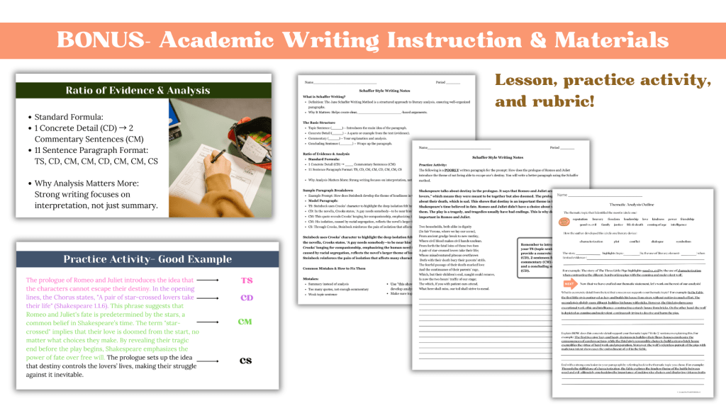 - Structured writing instruction for analytical responses